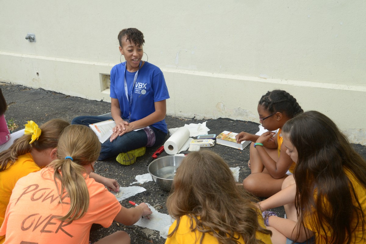 U.S Air Force Staff Sgt. Monique Hunter, with Air Education and Training Command, talks to children about biblical stories during vacation Bible school June 26, 2014, at Joint Base San Antonio-Randolph, Texas. (U.S. Air Force photo by Joel Martinez/Released)