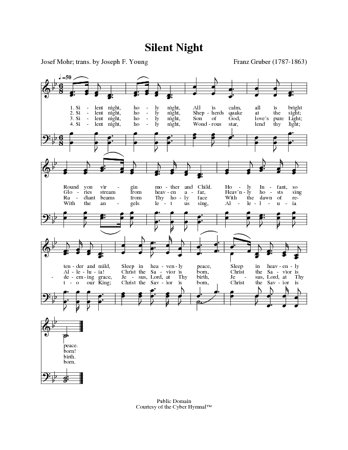 I like a good backstory and “Silent Night” has one. Silent Night, is the most popular Christmas song in the world. In 1816 Joseph Mohr penned the words in a poem as he nursed a case of tuberculosis and cared for his parishioners in snow laden land. It was a time known as the dark years that were notoriously made cold because of a volcanic eruption.
