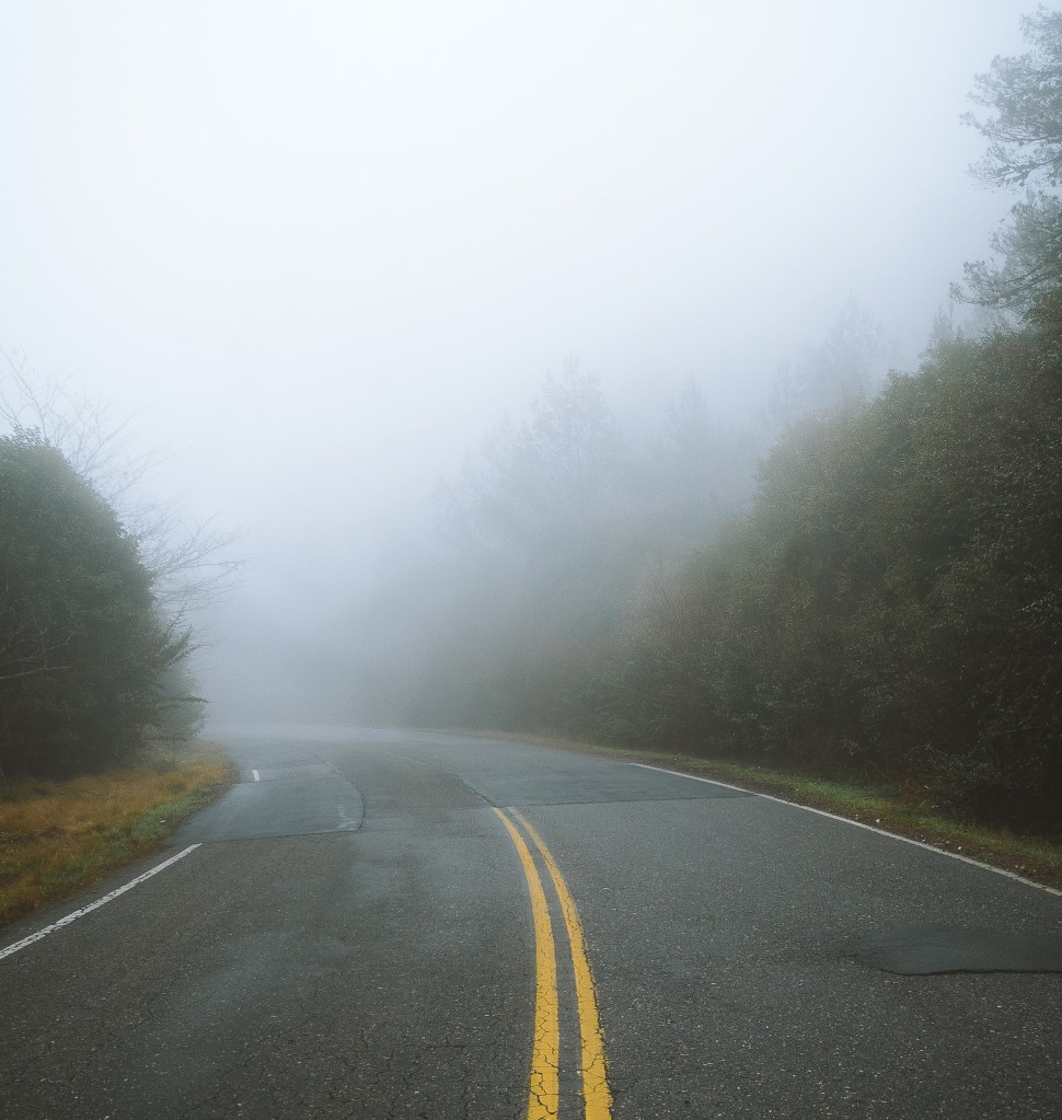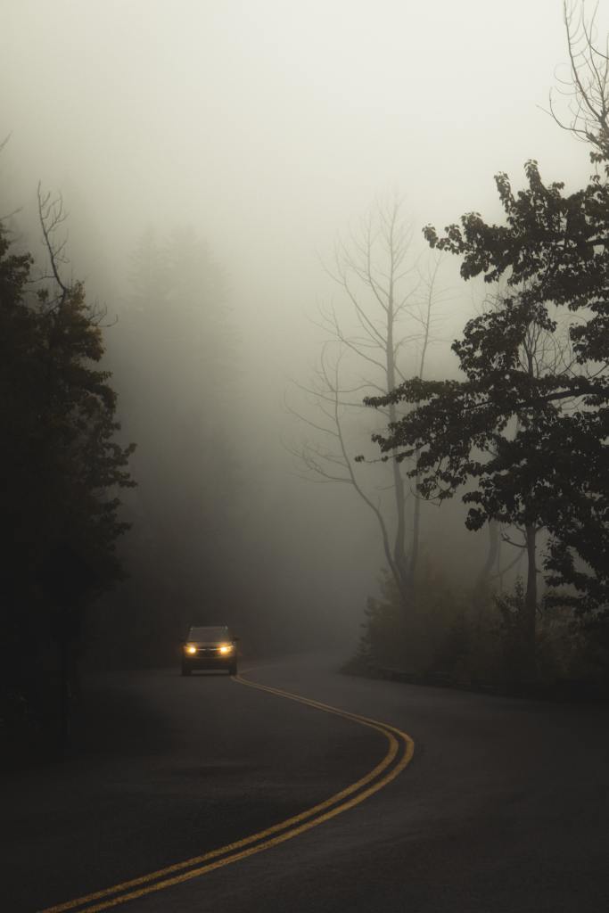We were traveling in a rather new vehicle and had no clue how to turn on the fog lights. After creeping along a quarter of a mile or so, we caught a glimpse of a sign for a scenic pull-off. Cautiously wrangling the car into the pull-off, we parked and grabbed the User’s Manual to figure out the fog lights.
